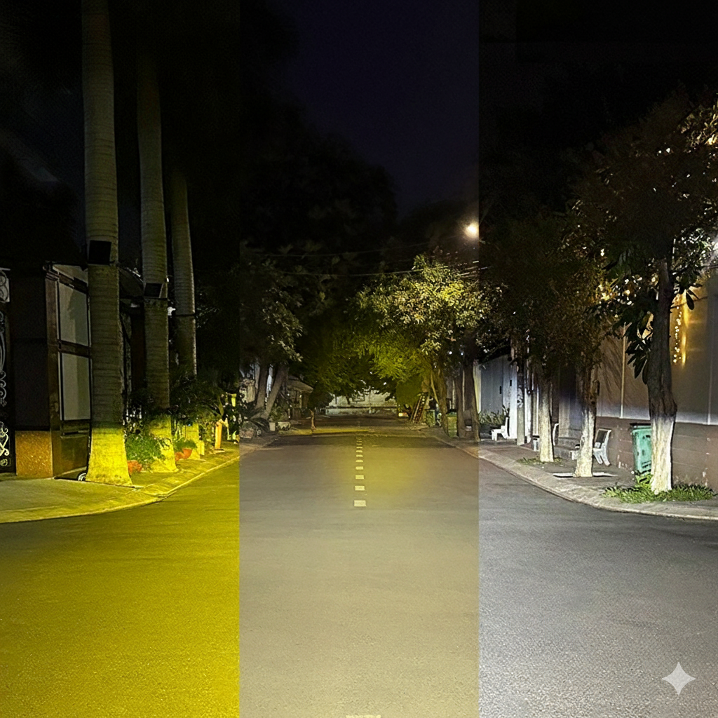 Dải ánh sáng trải đều mặt đường, giúp nhận diện vật cản từ xa