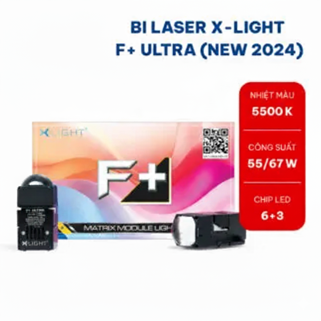 Bi Laser F+ Ultra là dòng bi LED cao cấp trang bị công nghệ Laser tăng cường chiếu sáng, cho ánh sáng mạnh, tập trung, đường cắt sắc nét và khả năng gom xa vượt trội. Sản phẩm phù hợp nâng cấp cho xe cá nhân, xe dịch vụ hoặc những ai muốn tầm nhìn tối đa ban đêm hoặc trên đường tối, đèo dốc.