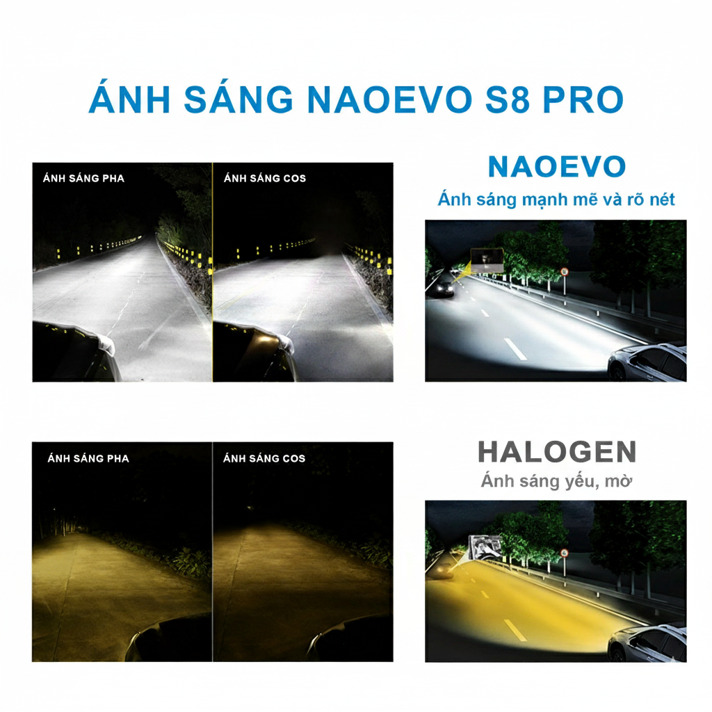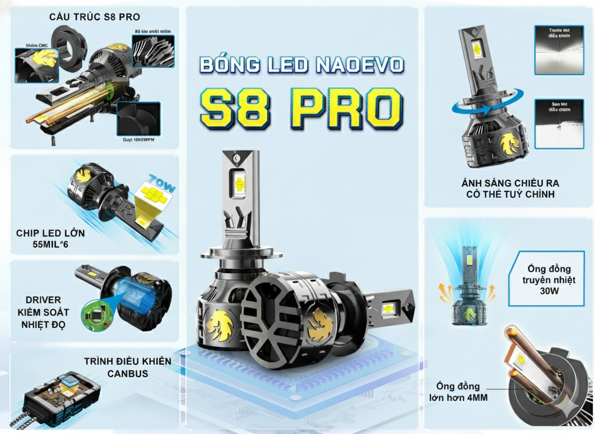 Bóng LED Naoevo S8 Pro là dòng LED cao hiệu suất được thiết kế để nâng cấp hệ thống đèn pha hoặc cos của ô tô. Với công suất mạnh và khả năng chiếu sáng vượt trội, sản phẩm mang lại tầm nhìn rộng và rõ ràng, giúp lái xe an toàn hơn trong nhiều tình huống giao thông.
