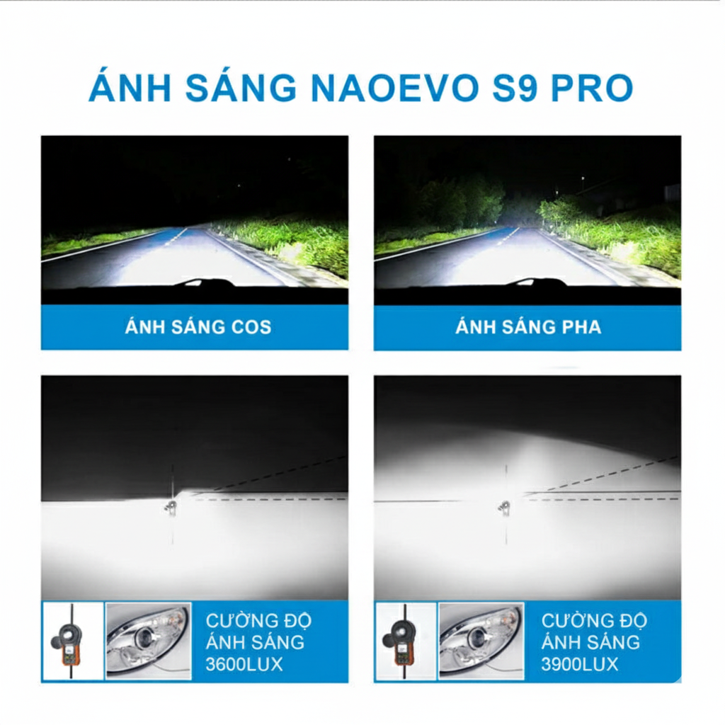 Bóng LED Naoevo S9 Pro – Ánh Sáng Mạnh Mẽ, Tầm Nhìn Rộng