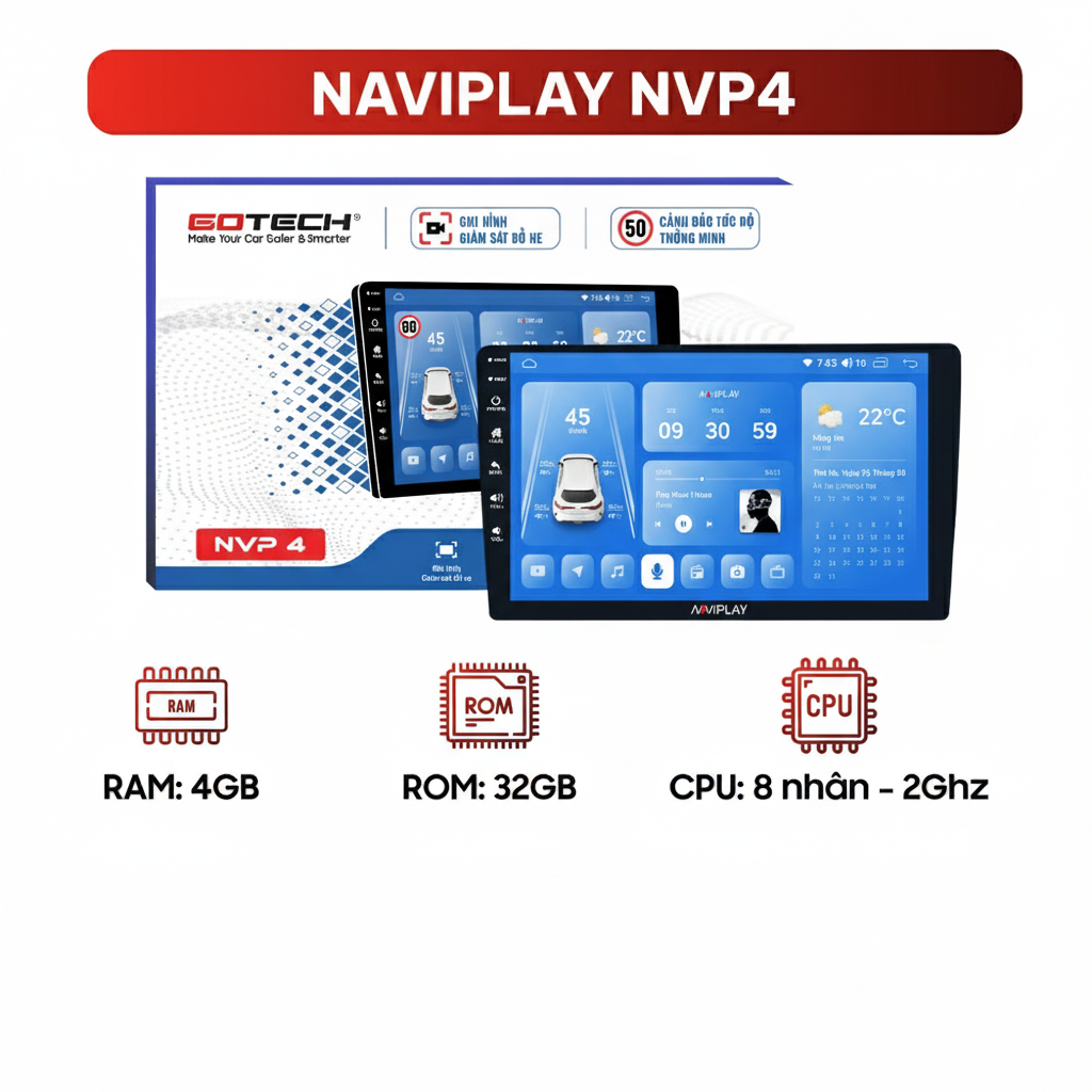 Naviplay NVP4 là mẫu màn hình Android ô tô tầm trung nhưng được trang bị cấu hình mạnh mẽ, giao diện trực quan và nhiều tính năng hỗ trợ lái xe. Sản phẩm phù hợp cho khách hàng muốn nâng cấp màn hình zin lên Android, vừa tối ưu trải nghiệm giải trí vừa đảm bảo an toàn và tiện lợi khi sử dụng.